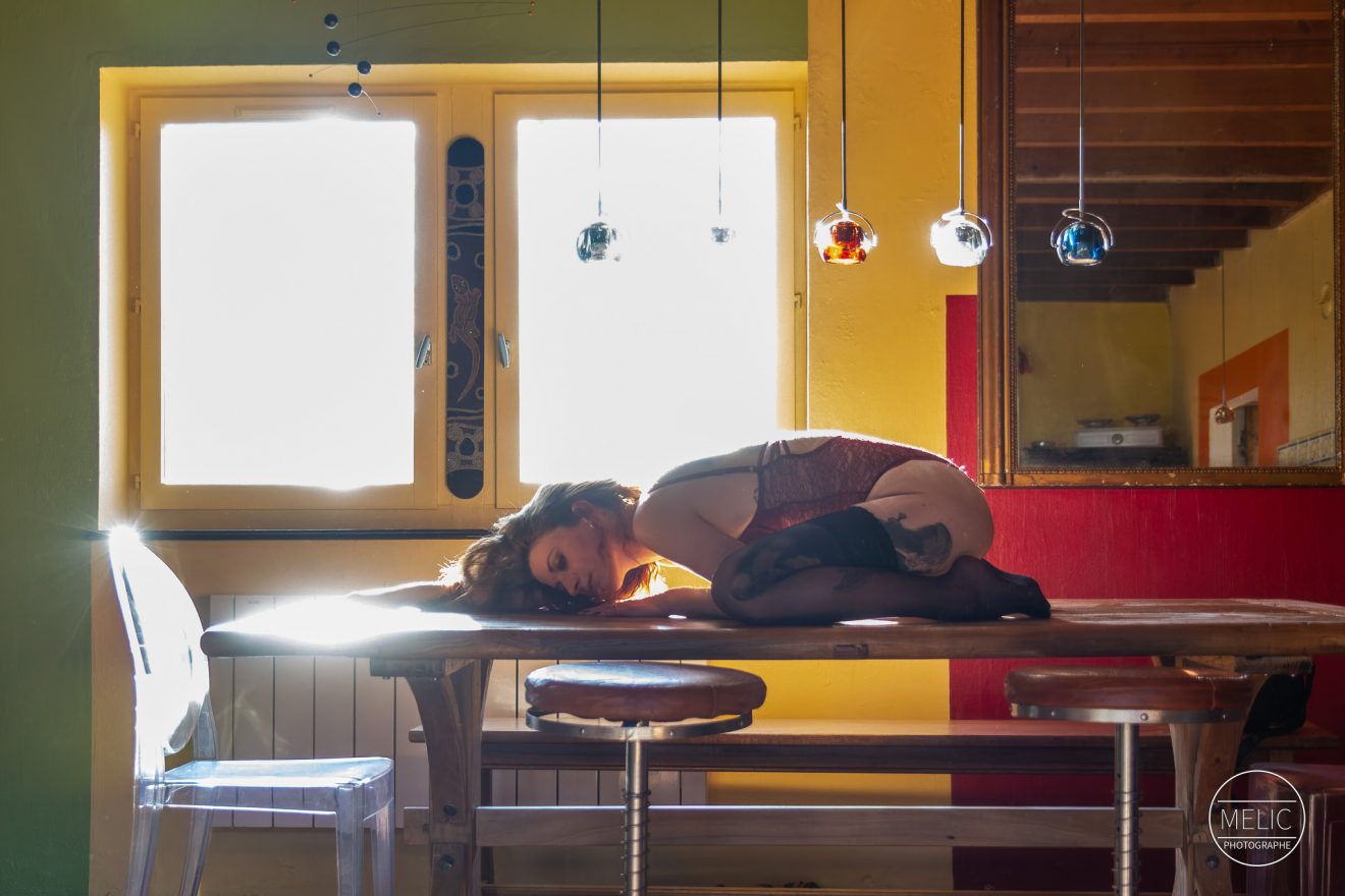Salut ! Alors oui, je l’avoue, on a transformé une magnifique table en bois en studio d’un jour. Mais quand tu as une lumière pareille et une modèle aussi talentueuse que Thelma, toutes les excuses sont bonnes, non ?