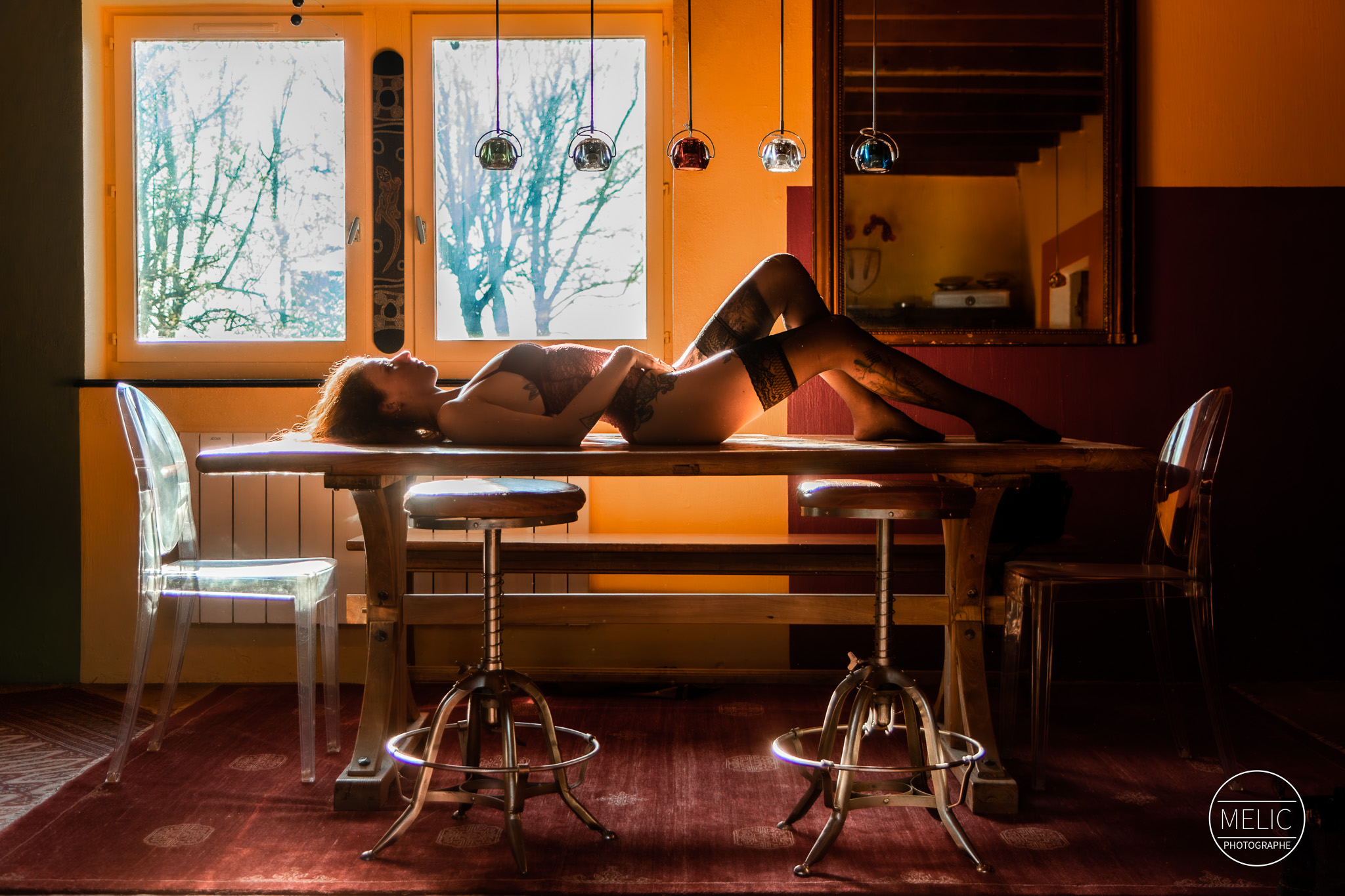 Salut ! Alors oui, je l’avoue, on a transformé une magnifique table en bois en studio d’un jour. Mais quand tu as une lumière pareille et une modèle aussi talentueuse que Thelma, toutes les excuses sont bonnes, non ?